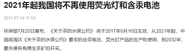 汞(水银)属于重污染金属,对环境有很大污染,故国际出台《水俣公约》限制汞的使用,传统汞灯会逐渐被淘汰。